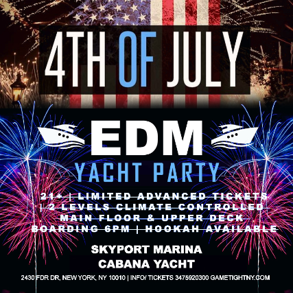 Tickets For July 4th Nyc Edm Sunset Fireworks Show Yacht Cruise Skyport Marina Cabana Yacht 2021 Ticketweb Skyport Marina In New York Us
