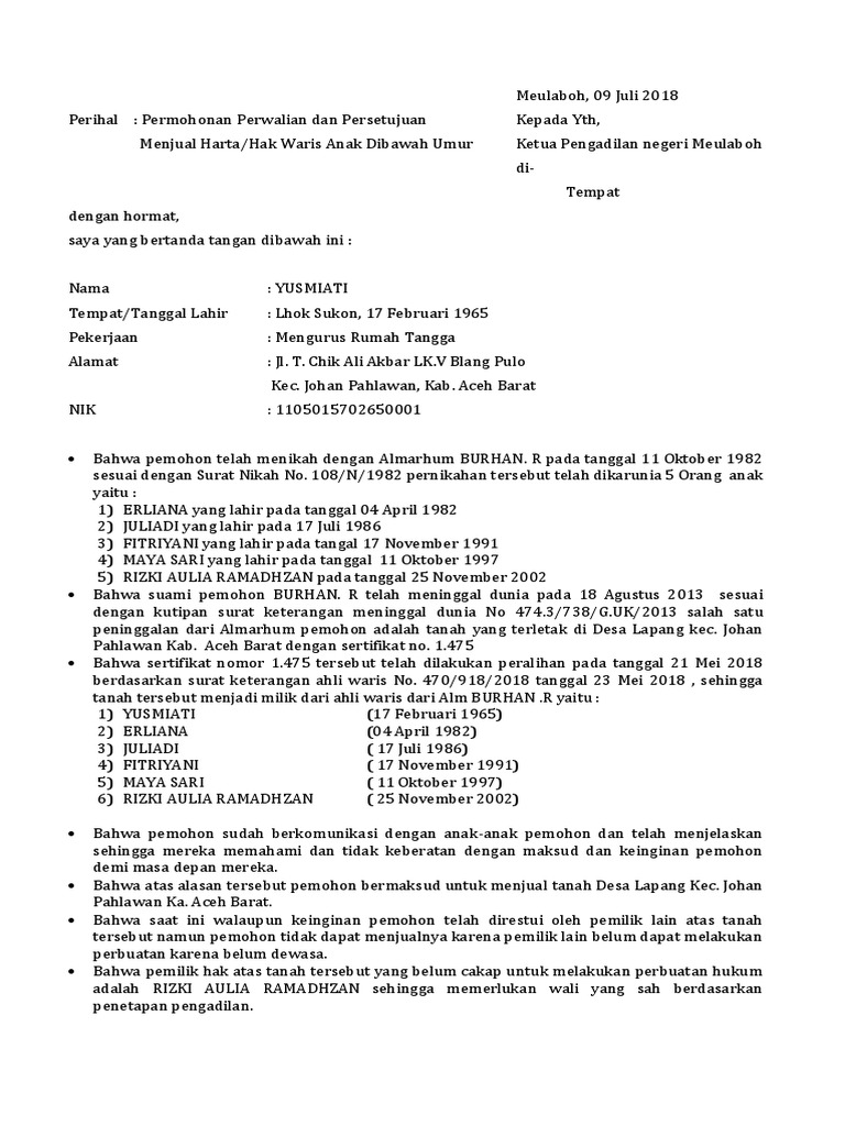 Setelah semua dokumen dan persyaratan terpenuhi, ahli waris dapat mengajukan permohonan ke pengadilan negeri atau notaris. Proses ini dapat memakan waktu yang cukup lama, tergantung pada jumlah ahli waris yang terlibat dan kompleksitas kasus.